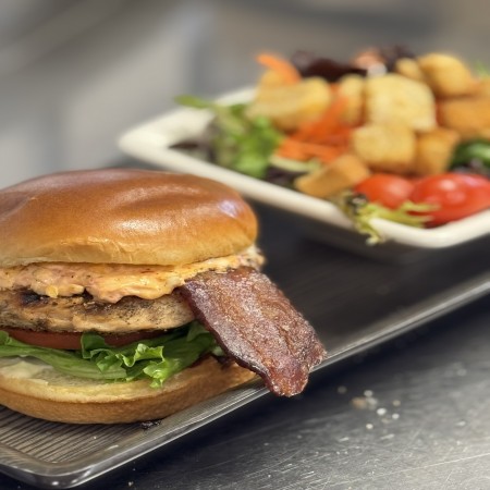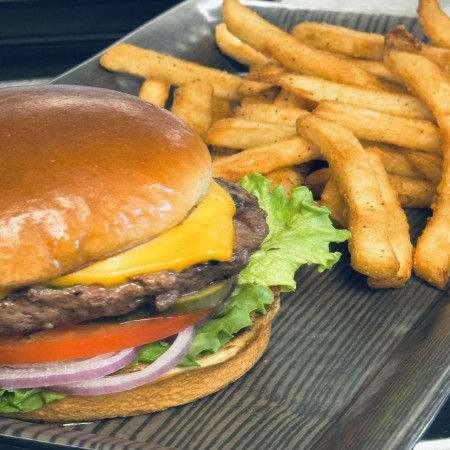 All Burgers are USDA Certified Beef and topped with steak butter. Grilled to medium** Other temps by request. Served on a toasted brioche bun with lettuce, tomato, onion and pickles. Served with fries. Substitute: House Side $1.50 or Premium Side $2.50, Wagyu Patty $6, Turkey Patty or Chicken Breast $3, Impossible Patty $5, Gluten-free Bun $2 Burger Toppings: Bacon $2, Mushrooms $1, Avocado / House-made Guac $2 Extra cheese: Cheddar, American, Pepper Jack, or Swiss $1