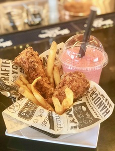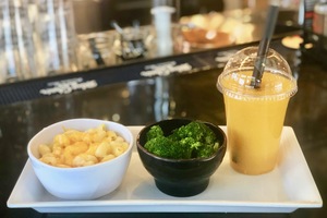 Includes fries, broccoli or mandarin oranges. Fruit slushie, juice or soda. Kids 12 & under.