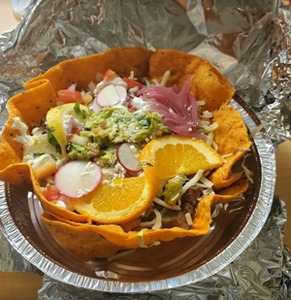 Flour tortilla seasoned with our own house special mix. Served with lettuce and pico de gallo